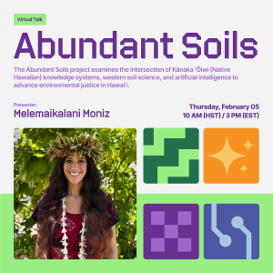 We are excited to announce an upcoming virtual talk by Dr. Melemaikalani Moniz focusing on the Abundant Soils Project!